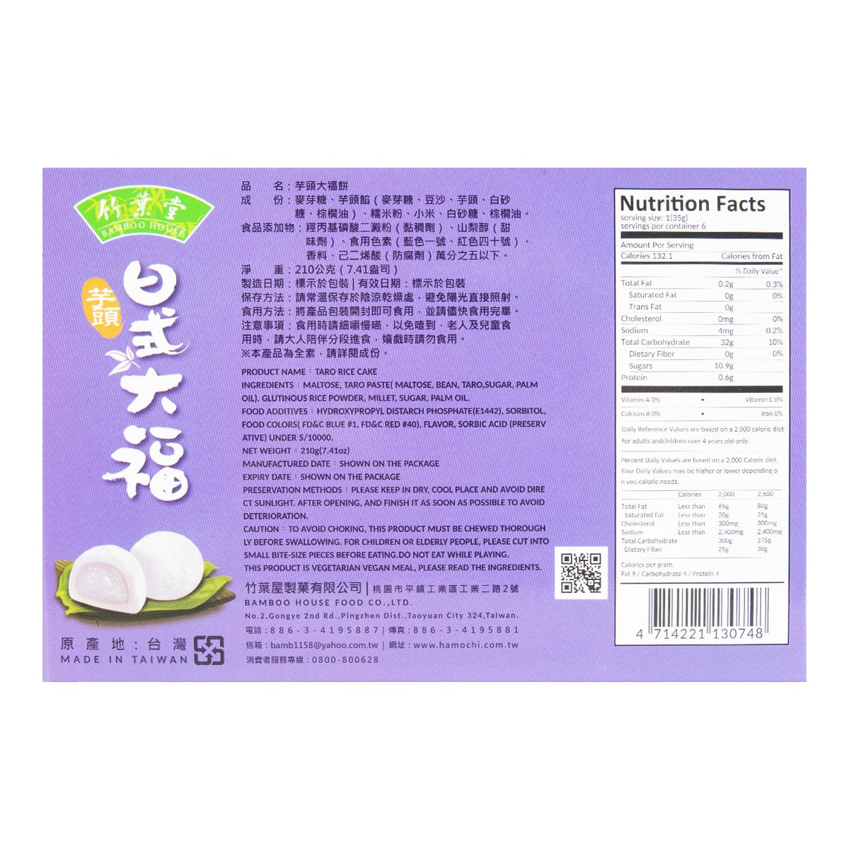Bamboo House Japanese Style Taro Mochi Cake 7.4 oz