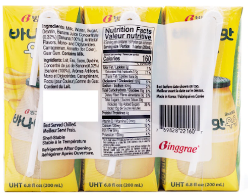 Binggrae Milk Drink, Banana Flavor 6ct 1 box