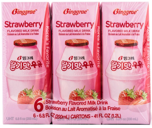 Binggrae Milk Drink, Strawberry Flavor 6ct 1200 ml
