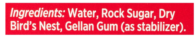Ingredients: Water, rock sugar, dry bird's nest, and gellan gum (as stabilizer).