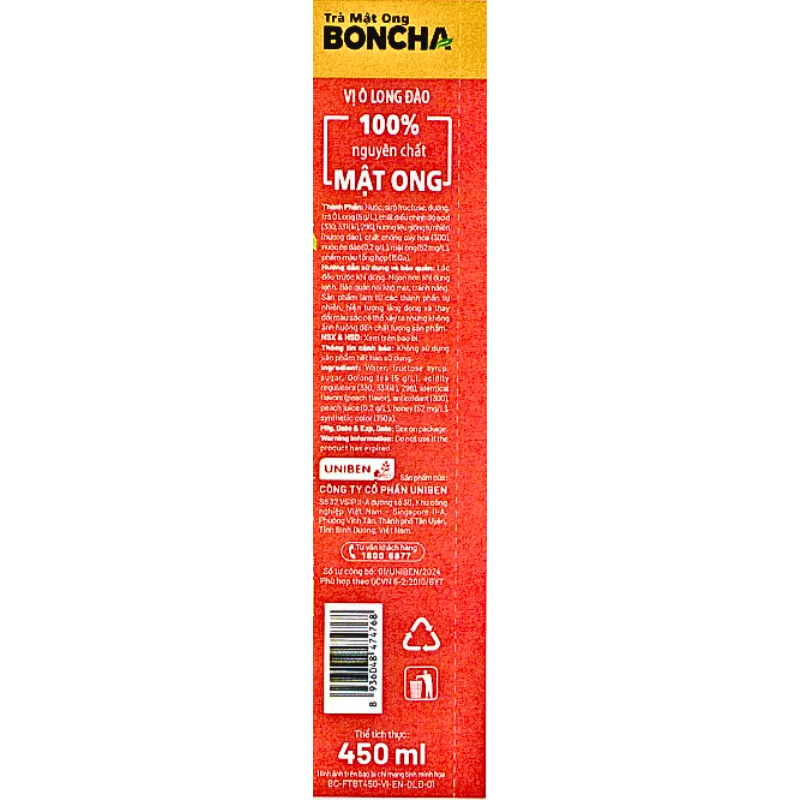 Refresh your day with the naturally sweet and aromatic taste of Boncha Honey Peach Oolong Tea. This delightful beverage combines the smooth, slightly roasted notes of premium oolong tea with the juicy sweetness of ripe peach and a hint of natural honey. Light, fragrant, and perfectly balanced, it's a great choice for tea lovers looking for a refreshing twist.
