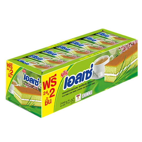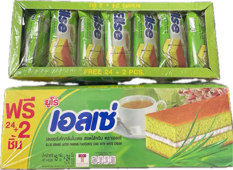 **Ellse Pandan Flavor Layer Cake** is a delightful treat with layers of soft cake and creamy fillings, infused with the aromatic and sweet flavor of pandan. This cake offers a tropical twist, providing a fragrant and slightly sweet experience that's popular in Southeast Asian desserts. Its light and airy texture make it an ideal snack or dessert for any occasion, combining a subtle richness with the unique taste of pandan.