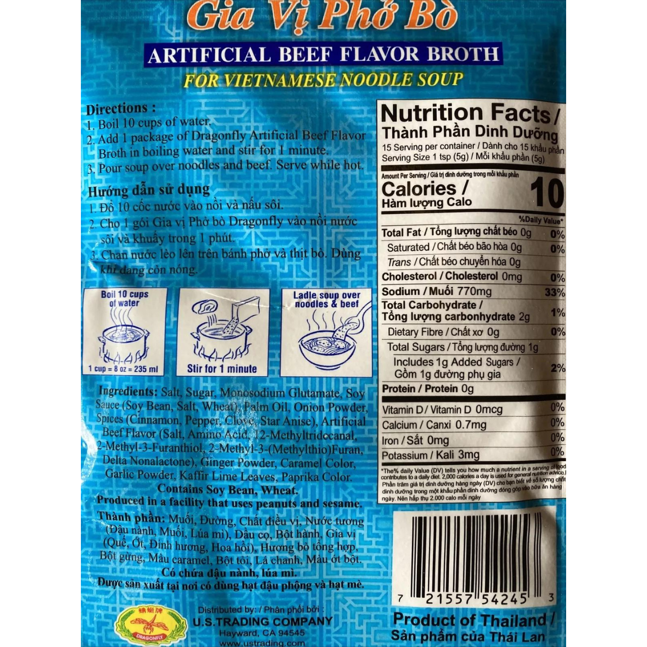 Enhance your homemade pho with Gia Vi Pho Bo! Packet contains artificial beef flavor broth, perfect for adding depth and richness to your broth. Elevate your pho game with this expertly crafted broth mix.