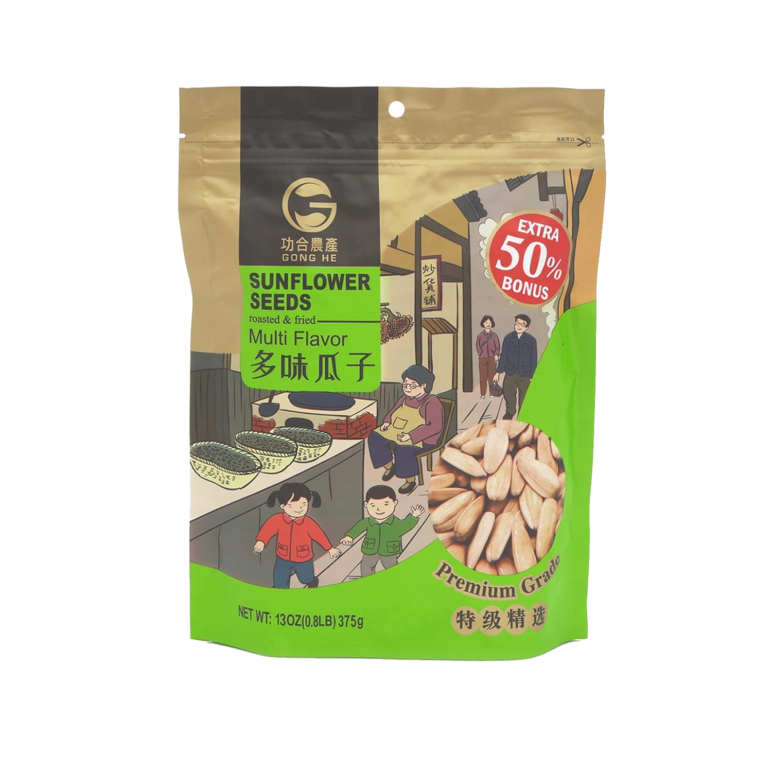Gong He Sun Roasted and Fried Flower Seeds Multi Flavor 375 g