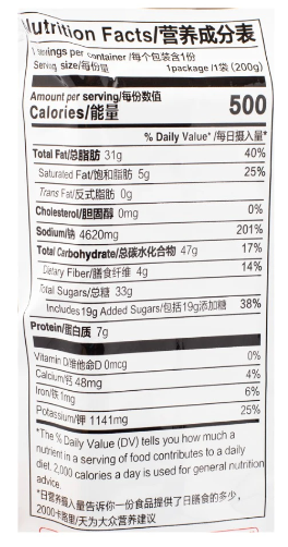 Ingredients: tomato paste, soybean oil, tomato, tomato ketchip (tomato paste, high fructose corn syrup, malt syrup, vinegar salt, artificial flavor, chili powder, onion powder), sugar, onion, salt, pickled ginger [ginger, water, salt, citric acid, acetic acid, erythotic acid (preservative), sodium metabisulfite [preservative]), seasonings, monosodium glutamate, salt, maltodextrin, sugar, corn starch, disodium inosinate, disodium guanylate, artificial flavor, soy protein isolate, tumeric), monosodium glutamate, citric acid, disodium inosinate, disodium guanylate, potassium sorbate (preservative).