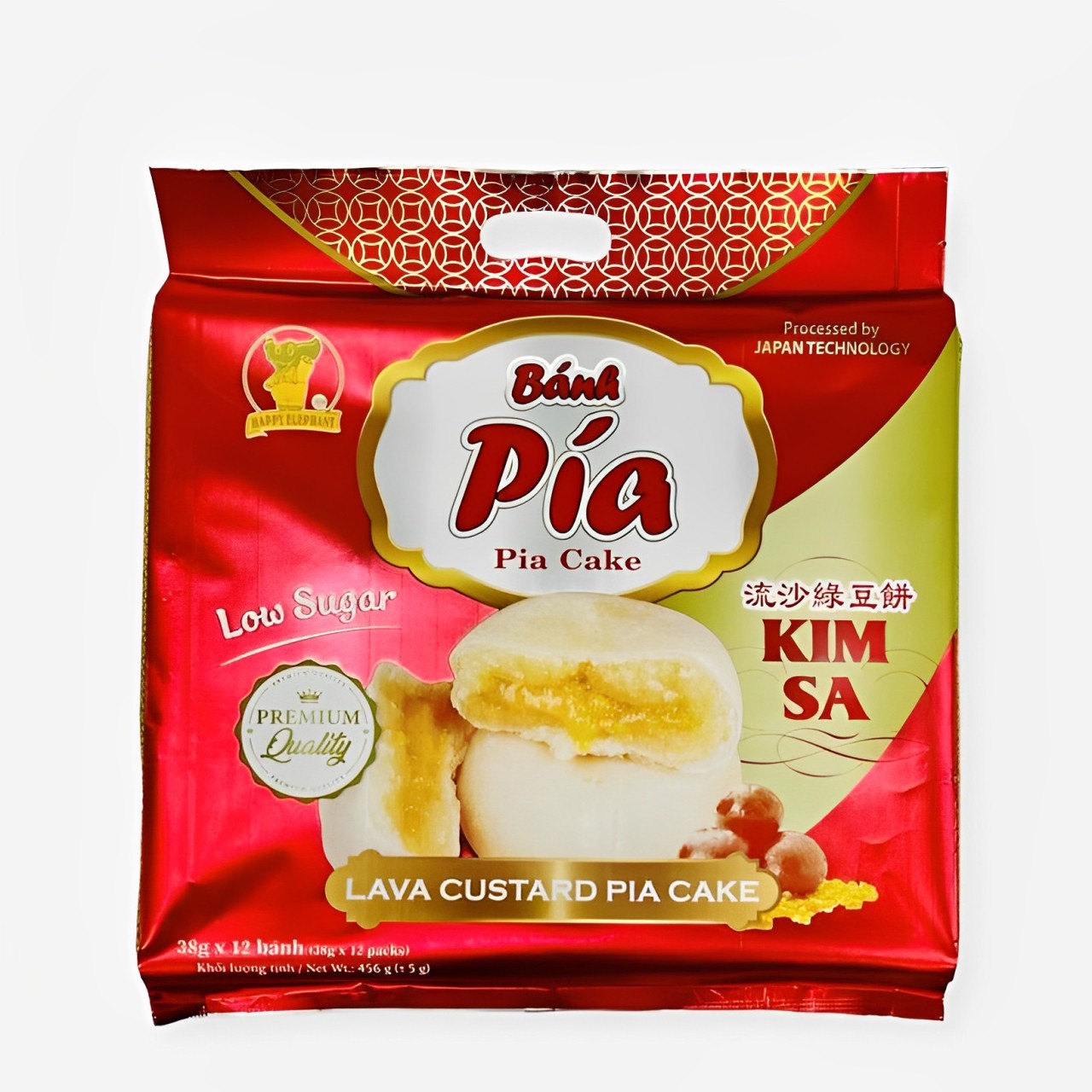 Experience the perfect balance of flavors with Happy Elephant's Pia Cake Lave Custard Mung Bean. Made with high-quality ingredients, our Pia Cake is filled with creamy custard and savory mung bean paste, creating a delectable treat for any occasion. Satisfy your cravings with each bite!