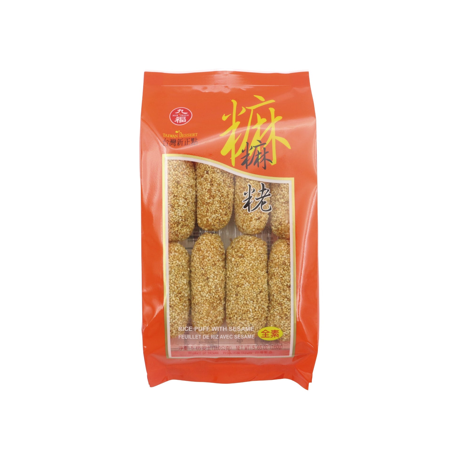 **Nice Choice Sesame Puff** is a crispy snack made from flour and toasted sesame seeds. These light, airy puffs offer a nutty sesame flavor and are perfect for enjoying with tea or coffee. With a gentle sweetness, Nice Choice Sesame Puff is an ideal choice for those who enjoy traditional and natural snacks.