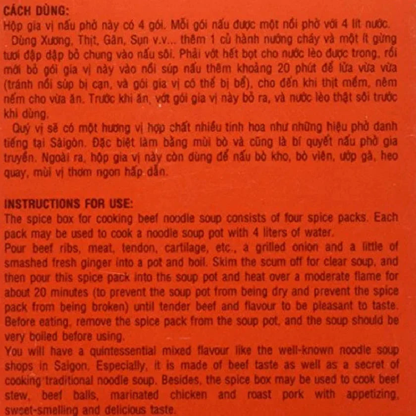 Pyramide Gia Vi Pho Hoa is a specially seasoning blend designed to enhance the flavor of pho, the beloved Vietnamese noodle soup. This aromatic mix features a combination of key spices such as star anise, cinnamon, cloves, and various herbs, creating a rich and fragrant broth that captures the essence of authentic pho. Perfect for use with both beef and chicken recipes, this blend allows you to easily achieve a deep, complex flavor in your homemade pho. Just add it to your simmering broth to enjoy a delicious and satisfying bowl of soup!