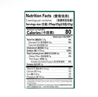 Ingredients: umami seasoning (monosodium glutamate, salt, maltodextrin, sugar, corn starch, edible dextrose, hydrolyzed protein powder (acid hydrolyzed vegetable protein seasoning, maltodextrin, salt), soy sauce powder (fermented soy sauce, maltose), yeast extract, disodium 5'-ribonucleotide, flavor, citric acid, garlic powder), monosodium glutamate, flavoring powder (monosodium glutamate, sugar, disodium 5'-ribonucleotide, yeast extract, maltodextrin, spices, flavor), sunflower oil, salt, fermented soybeans (soybean, salt), umami flavoring powder (monosodium glutamate, salt, maltodextrin yeast extract, sugar, disodium 5'-ribonucleotide, disodium succinate, flavoring, silica), flavor, maltodextrin, goji berry, white pepper.