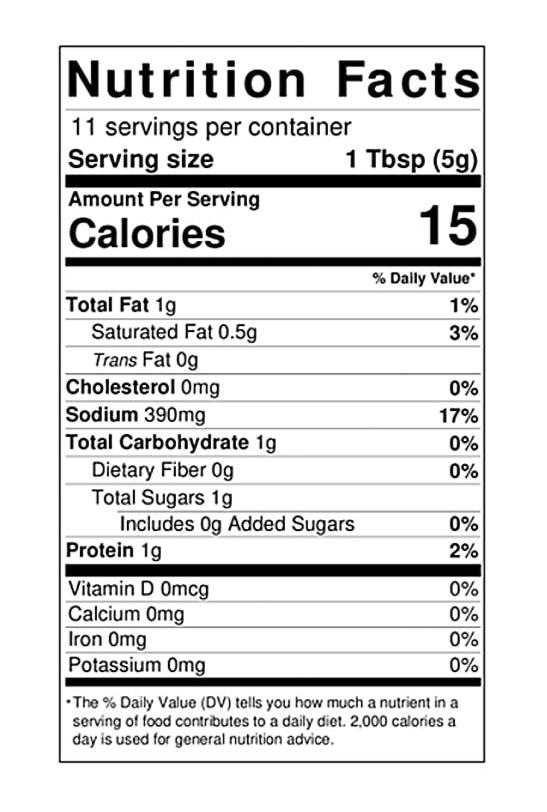 Ingredients: Roasted White Sesame Seed, Sugar, Salt, Dried Green Seaweed, Roasted Black Sesame Seed & Hydrolyzed Corn Protein.