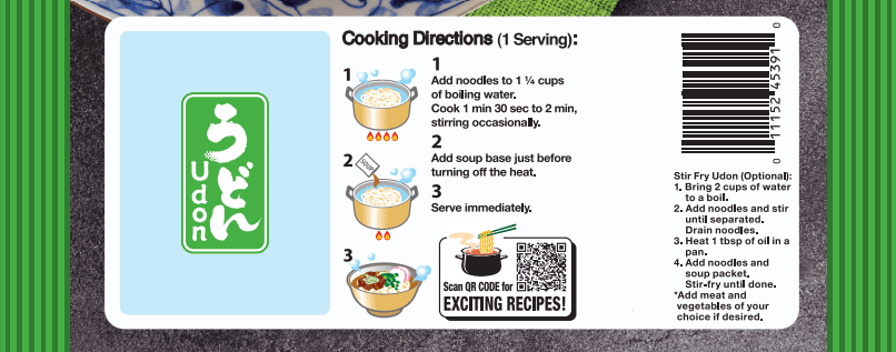 Traditional udon uses a broth that is made of katsuobushi (dried, fermented and smoked fish) and kombu (kelp) for a light and umami filled taste. Our Original Flavor Udon perfectly replicates that taste. You can also try it stir-fried! Cook the noodles for a few seconds to separate then add to a hot frying pan with oil, add half the flavor packet, desired toppings and enjoy!
