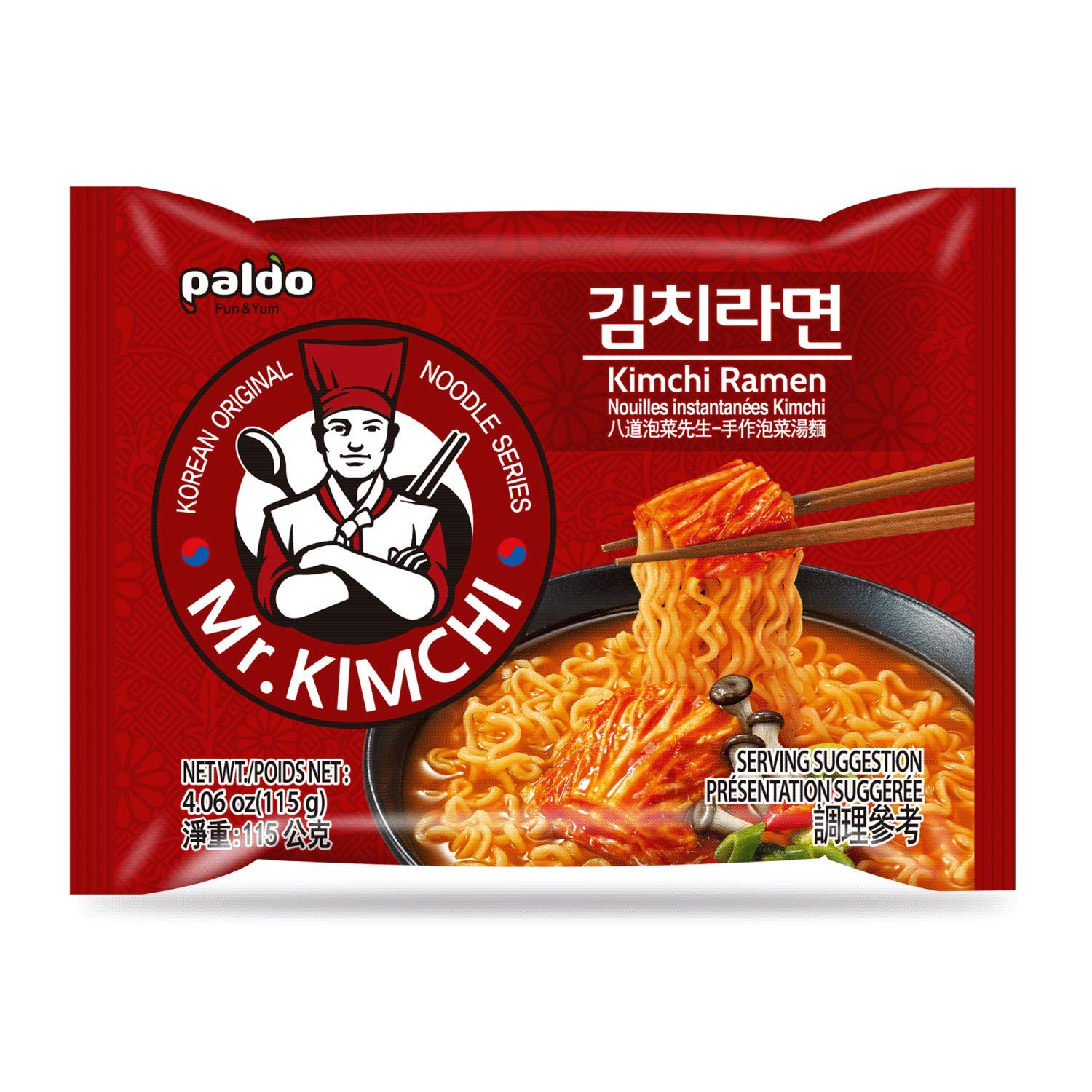 Paldo Fun & Yum Kimchi Ramen Instant Noodles with Soup, Kimchi Based Spicy Broth, Best Oriental Style, Original Korean Ramyun