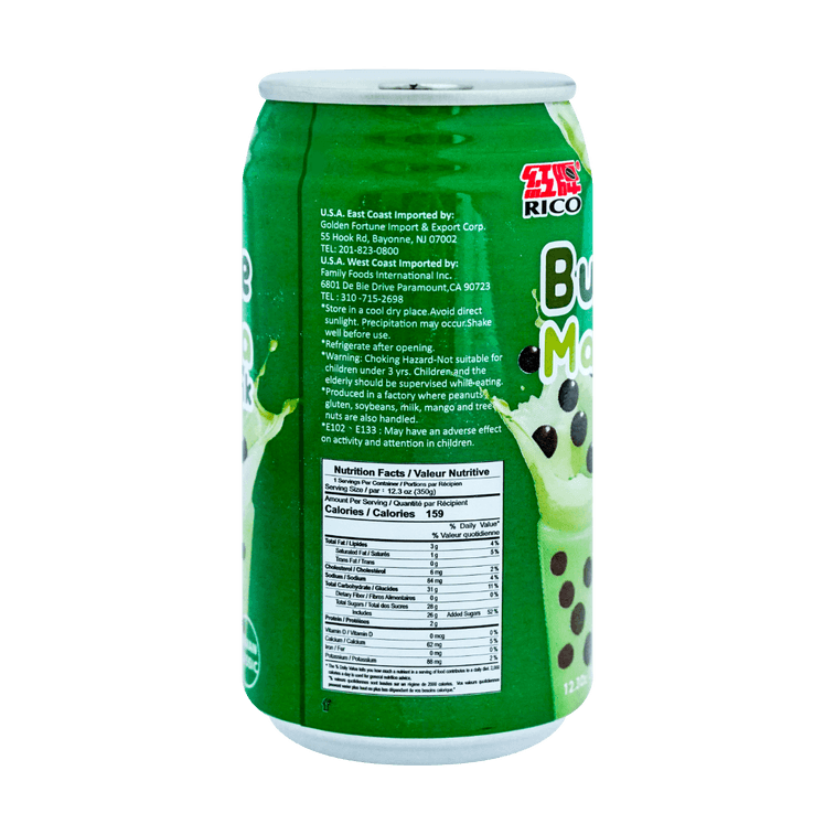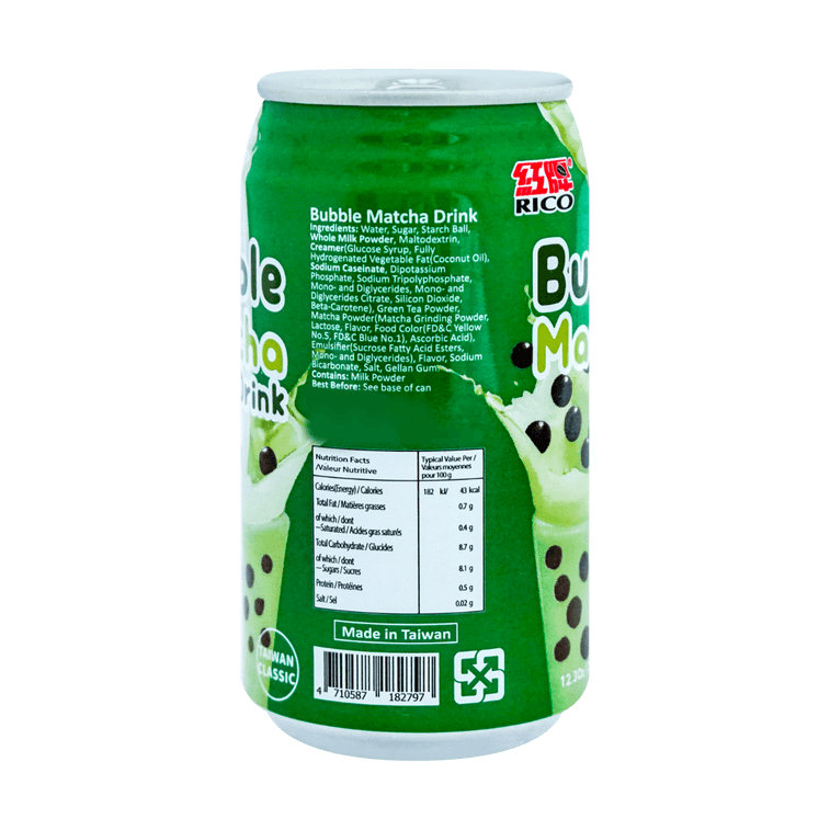 RICO Matcha Bubble Milk Tea Drink, 12.3oz