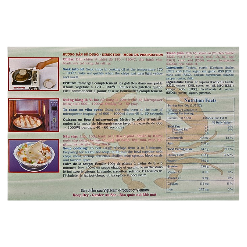 Enjoy the rich, savory flavor of crab with Sa Giang Special Crab Crackers – a premium Vietnamese snack made from high-quality crab meat and tapioca starch. Crispy, light, and delicious when deep-fried, these crackers are perfect as a side dish, party treat, or an everyday snack.