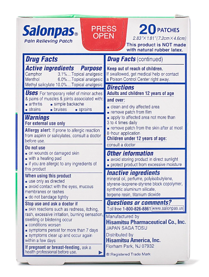 Salonpas Pain Relieving Patch 20 Sheets 1 each