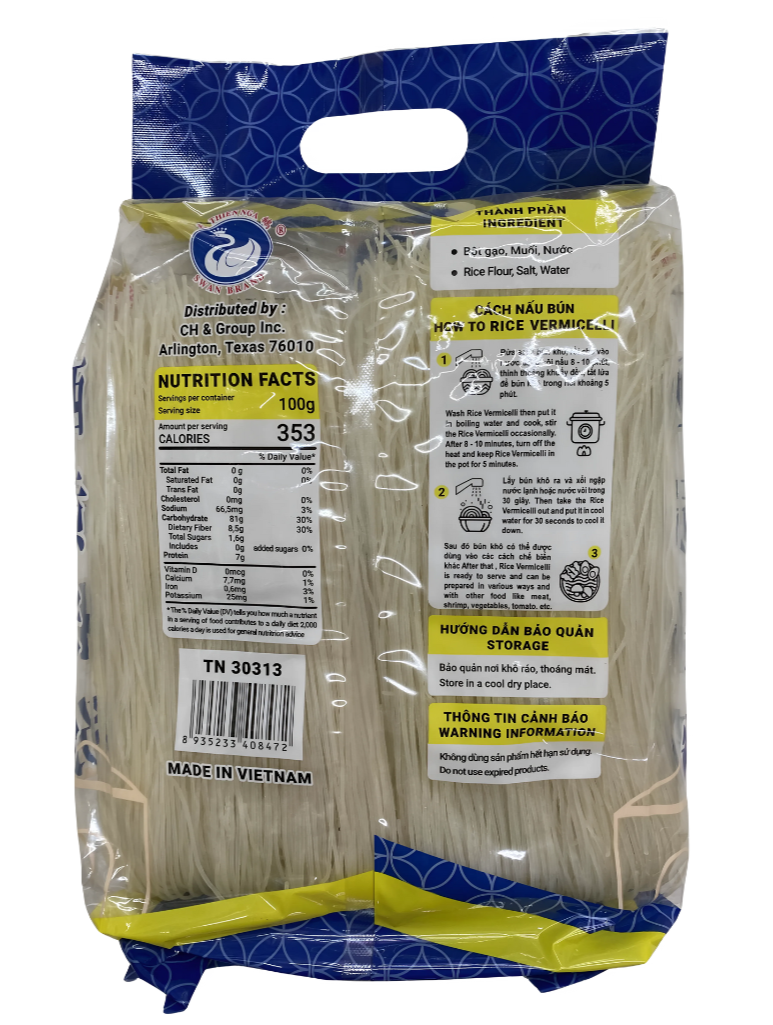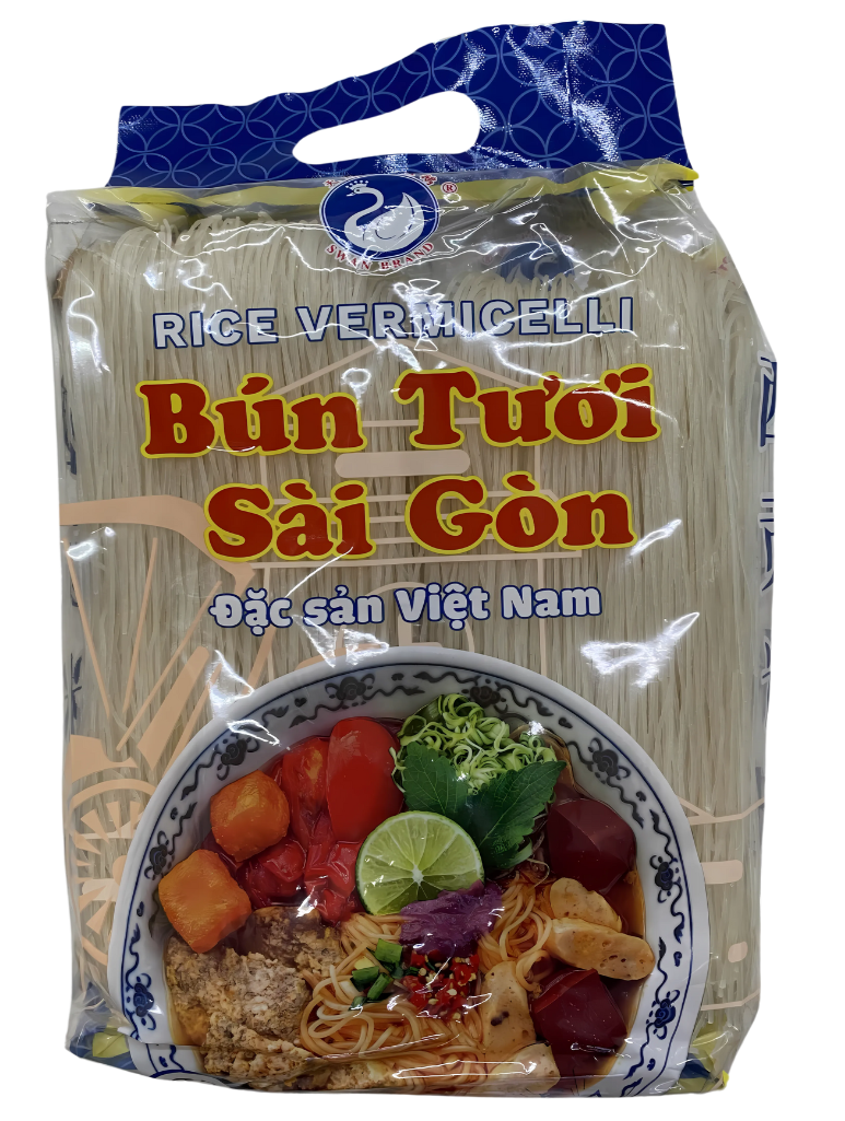 Swan Brand Sai Gon Rice Vermicelli is a versatile and delicate Vietnamese noodle made from finely milled rice. Known for its soft, smooth texture, it is perfect for a wide range of dishes, including stir-fries, salads, and soups. This rice vermicelli is ideal for creating traditional Vietnamese dishes like bún chả or bún thịt nướng, offering an authentic taste and satisfying experience.