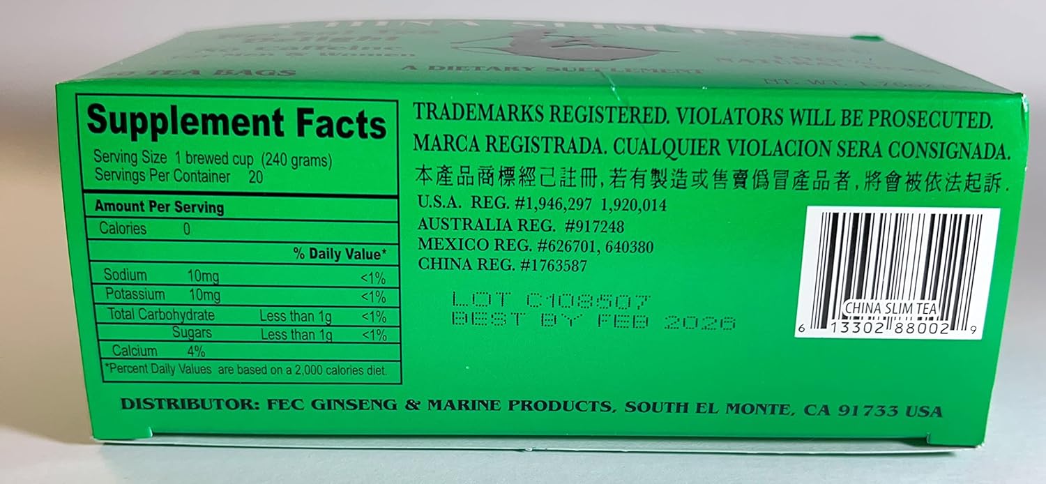 Tea Pot Brand Chinese Slim Tea 20 tea bags