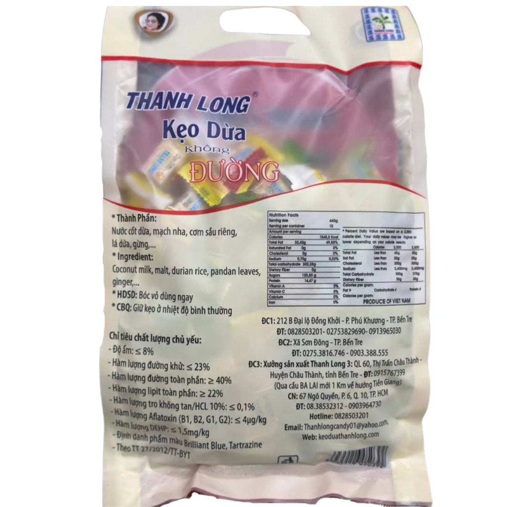 **Thanh Long Sugar-Free Coconut Candy** is a sugar-free coconut candy with the rich, creamy flavor of natural coconut. Despite being sugar-free, it maintains a mild sweetness and pleasant coconut aroma, making it ideal for those who enjoy sweets but want to limit their sugar intake. This is a perfect snack, both delicious and healthy.