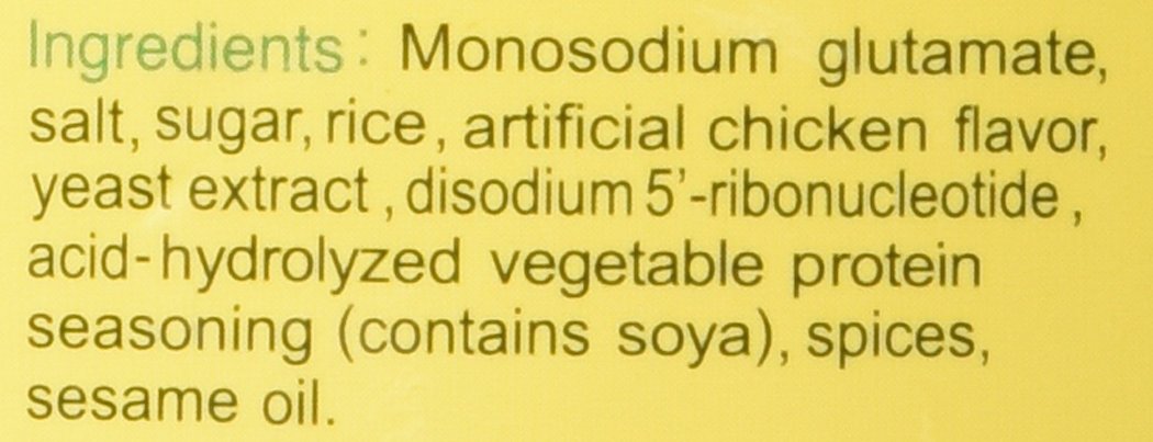 Nutritional value: contains minimal amounts of fat, protein, and carbohydrates (including sugars and dietary fiber). The primary ingredients are salt, rice, sugar, and flavor enhancers like monosodium glutamate and disodium 5'-ribonucleotide.