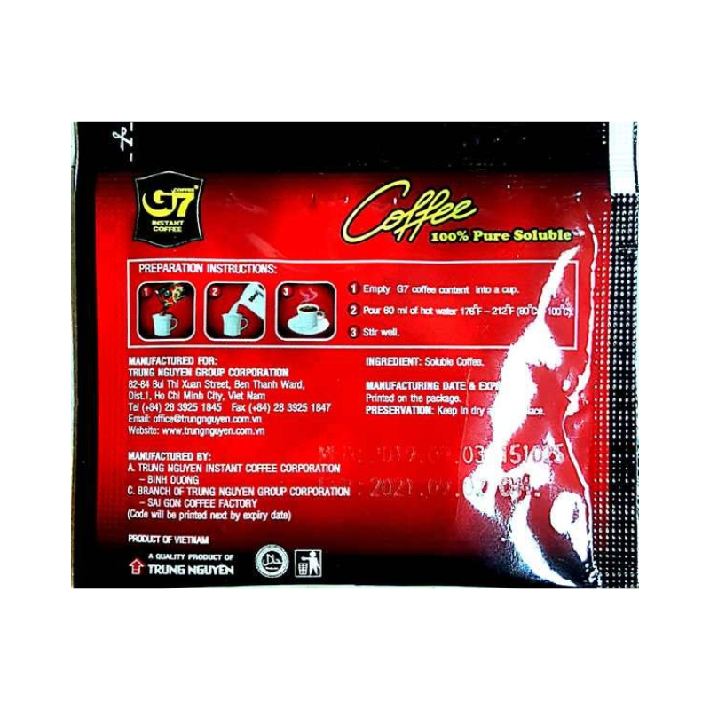 Trung Nguyen G7 Pure Black Instant Coffee 100% Pure Soluble