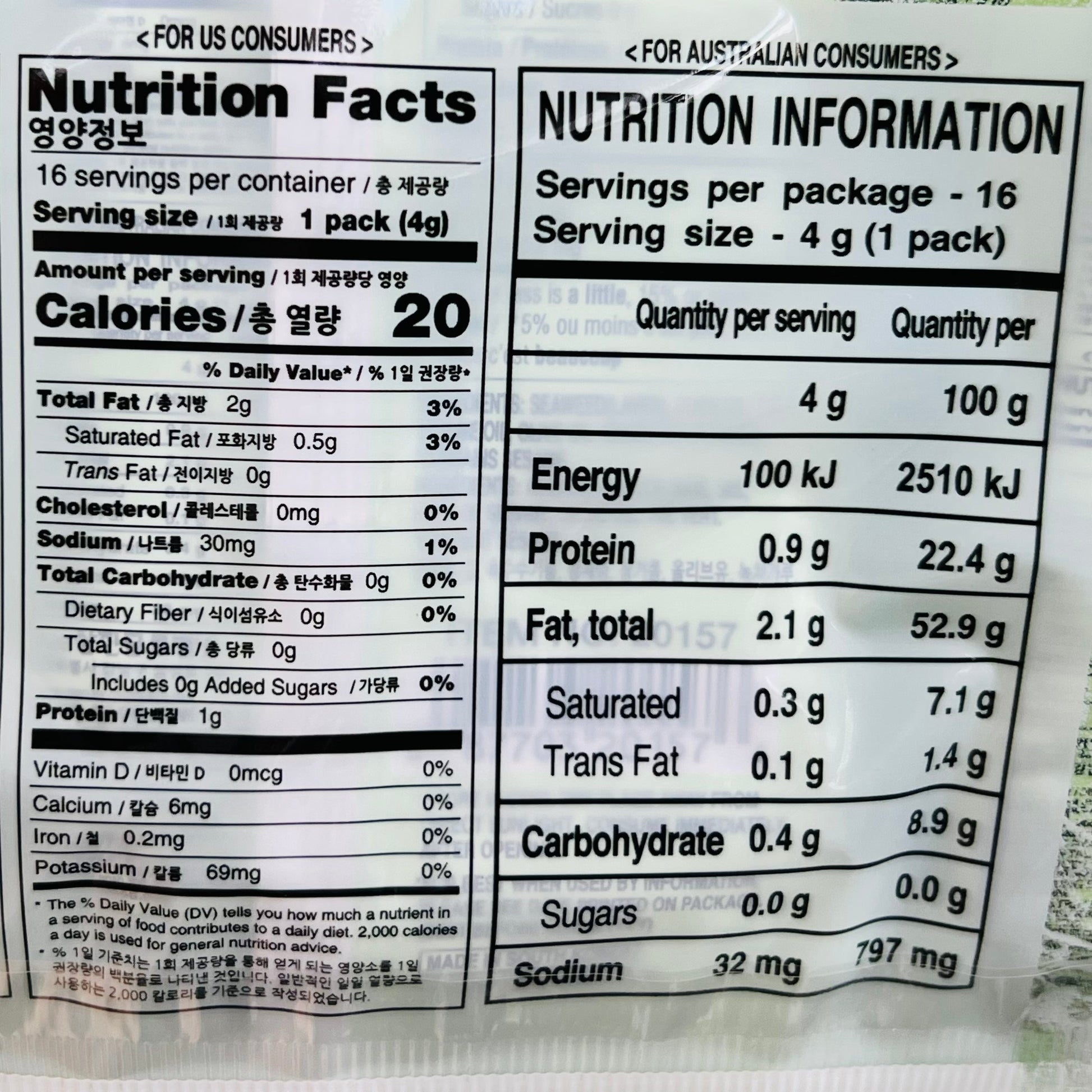 Wang Roasted Green Tea Seaweed Laver with Green Tea 16pk 64 g